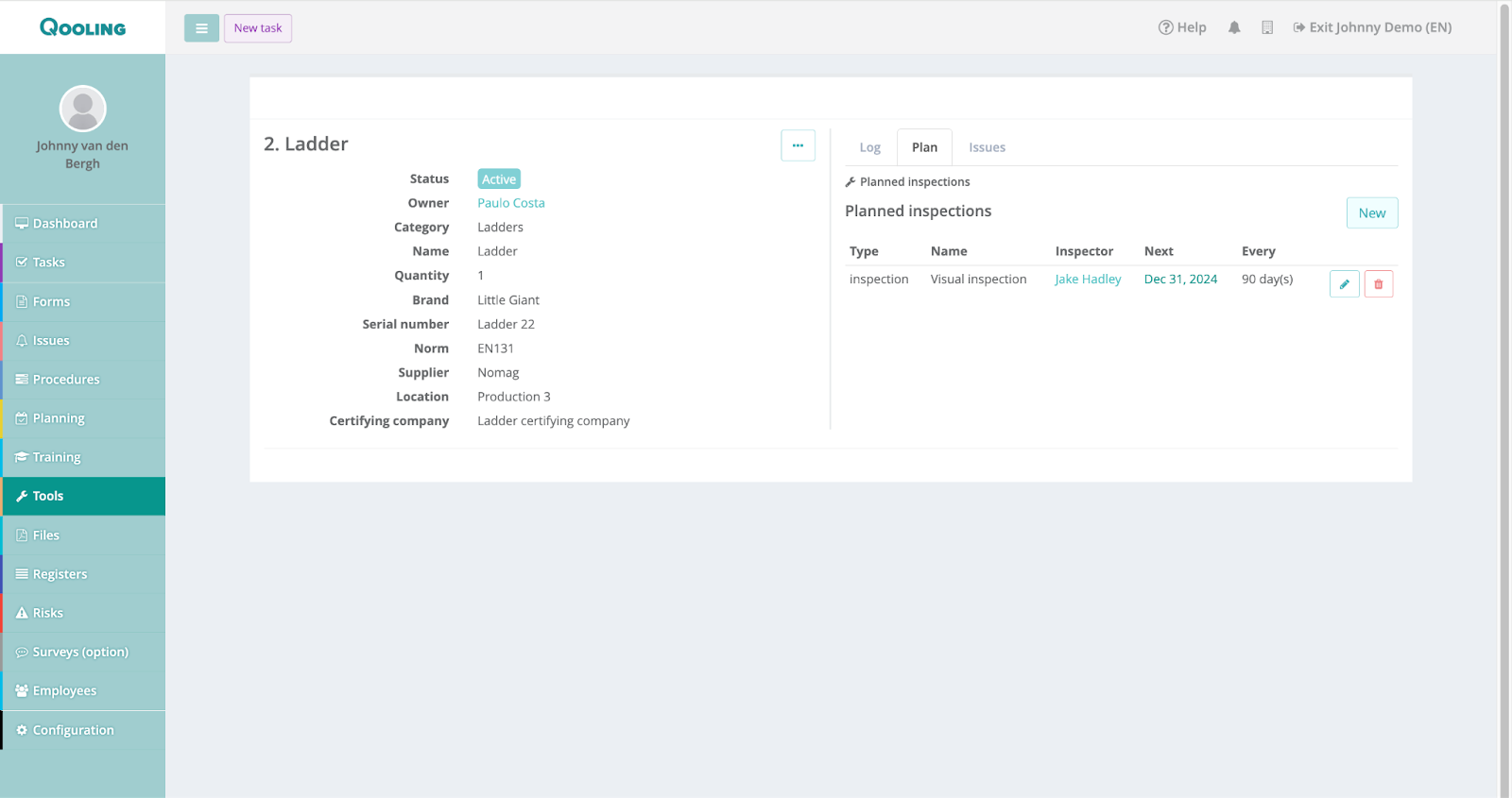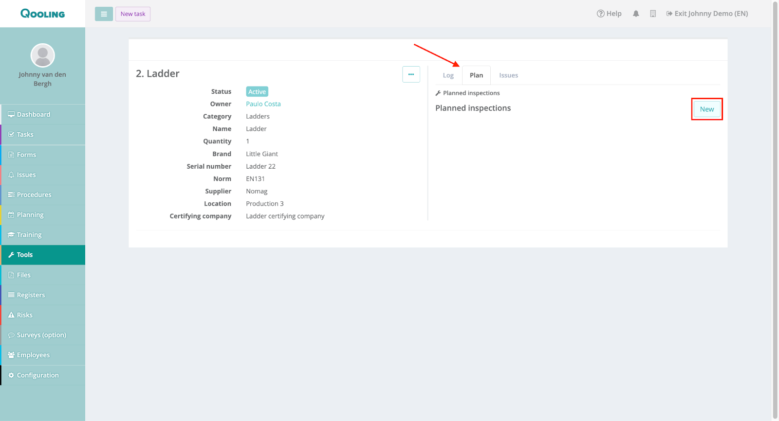 Now that you saved the tool, click on it. And click on the 'Plan' tab. There you can plan a 'New' inspection.