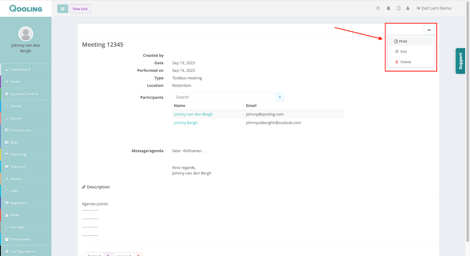 Step 3: Click on the Meeting that you planned, and Perform the meeting.