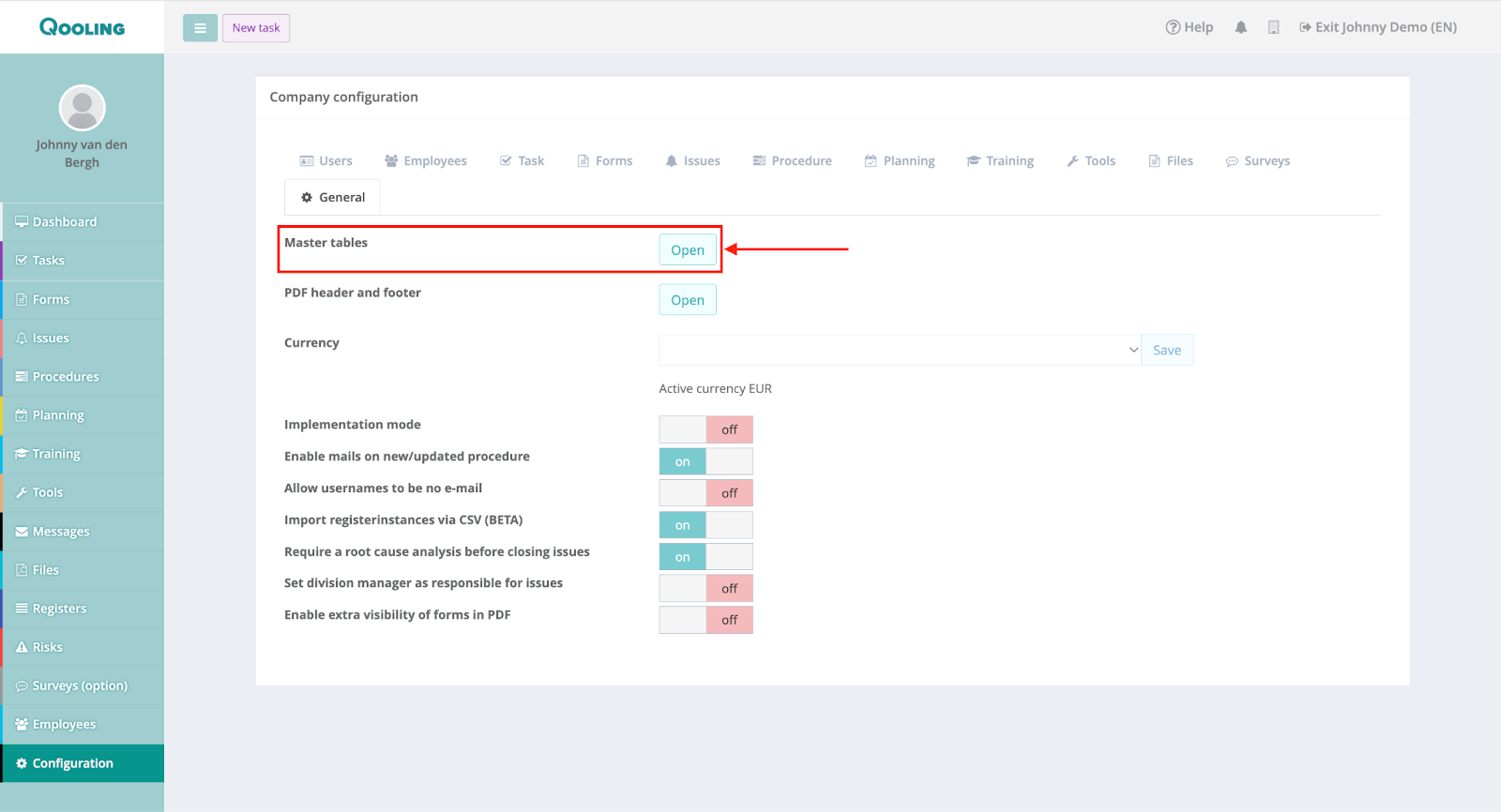 Step 2: Click on the 'Open' button, next to the Master tables.