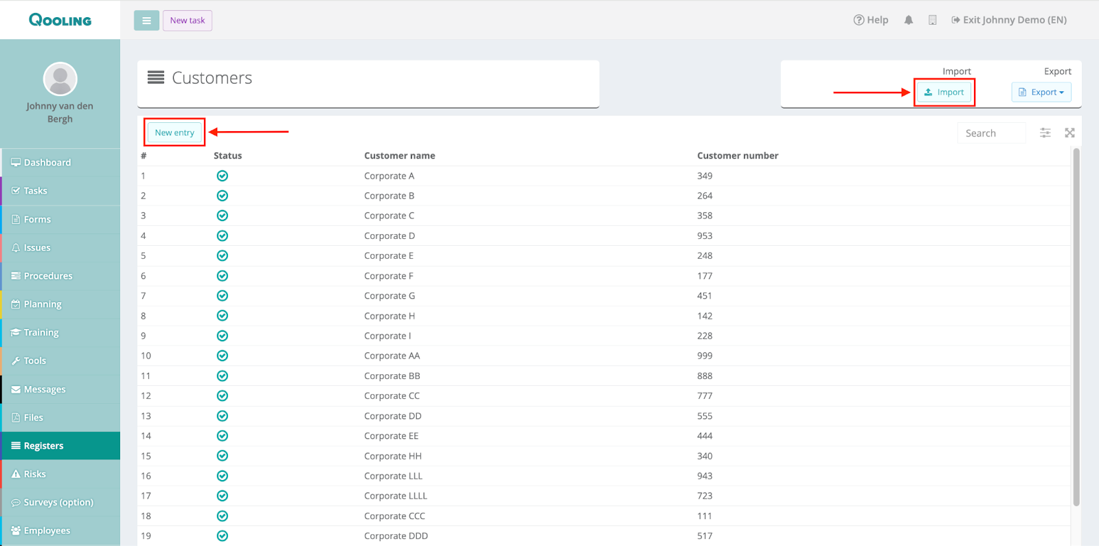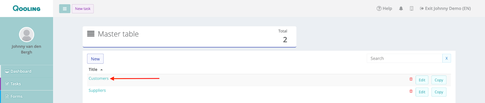 Click on ‘New entry’ to manually add data to the master table. Click on the 'Save' button after you fill in the data.