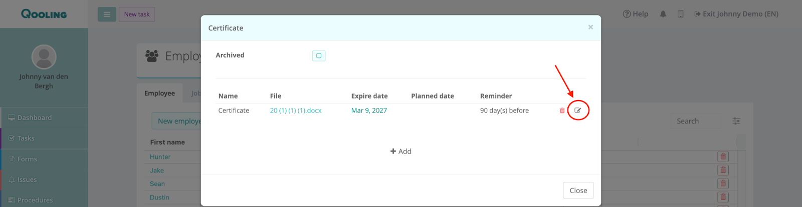 If you want to make changes to the current certificate details, because perhaps you set a wrong expiry date, or uploaded the wrong certificate file, you can do the following: