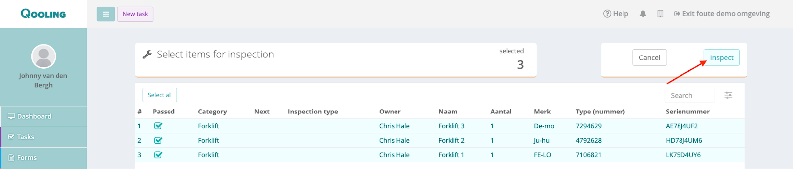 Manually select the tools that you would like to inspect, or click on the ‘select all’ button.