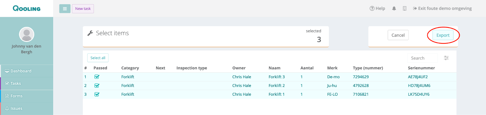 Manually select the tools that you want to export QR-codes for, or click on the ‘select all’ button if you want to export QR-codes for all of the tools.