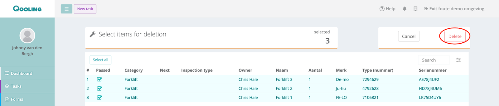 One last pop-up will appear, where you need to write the number of tools that you want to delete. Afterwards, click on the ‘delete’ button.