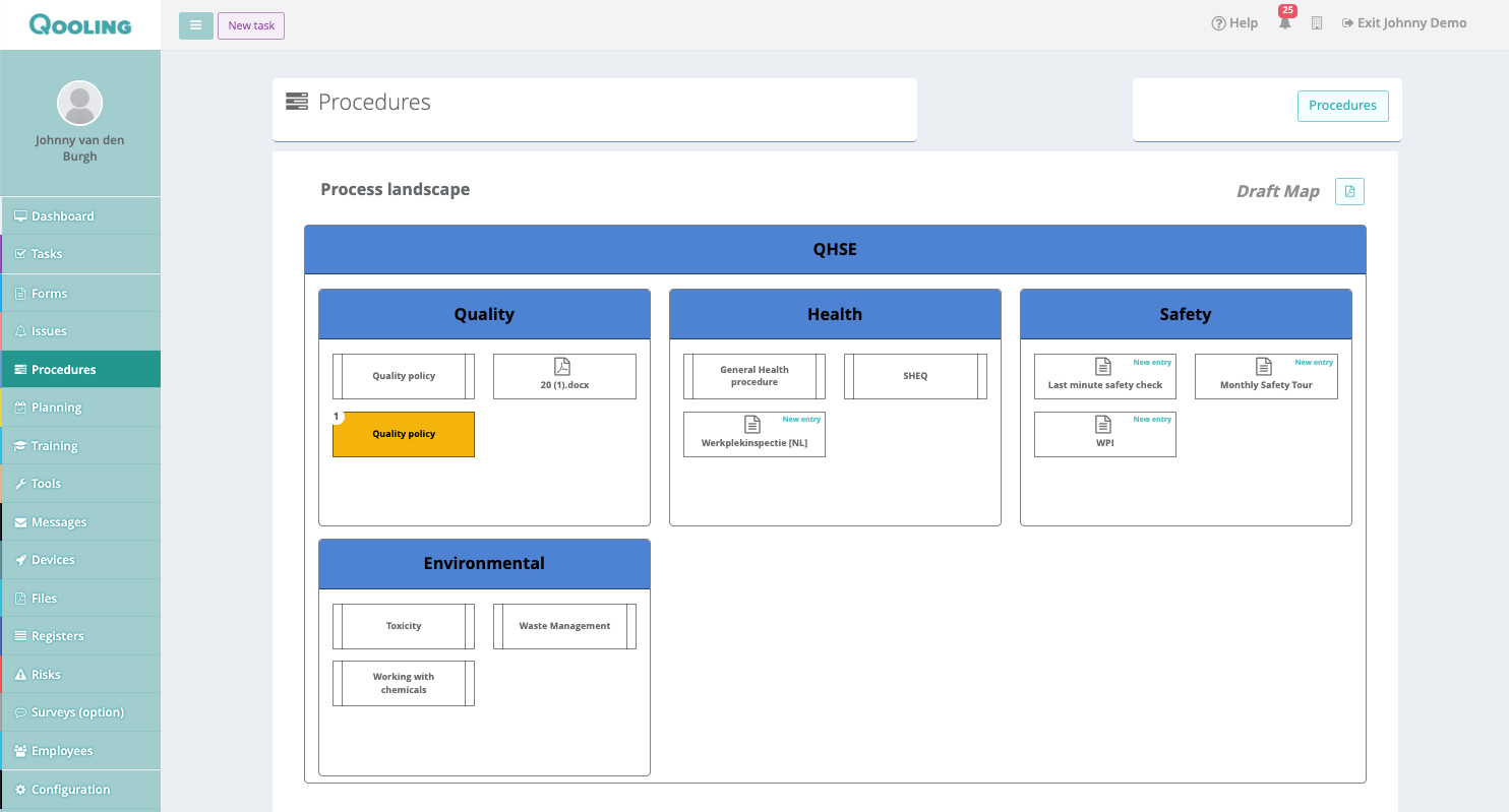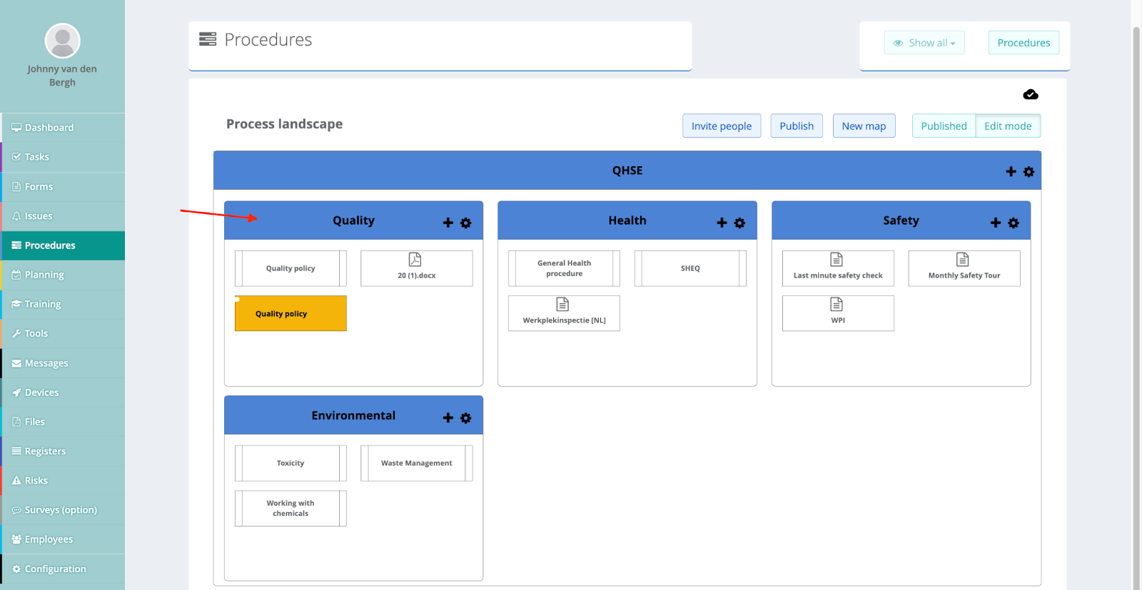 By doing this, you can configure your process landscape however you prefer, with a lot of options. You can create maps, in maps, and add procedures/documents/forms to them.